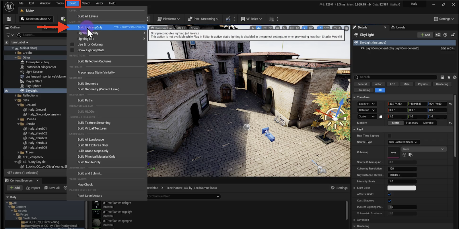 Baking lights on a Unreal level in preparation for export to OKO