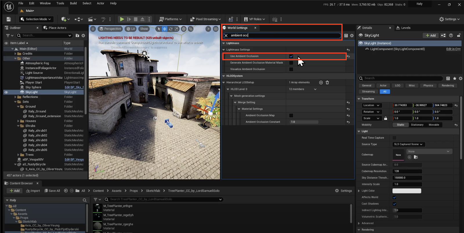 In World Settings, locate “Ambient Occlusion” and ensure it’s enabled by checking the box.