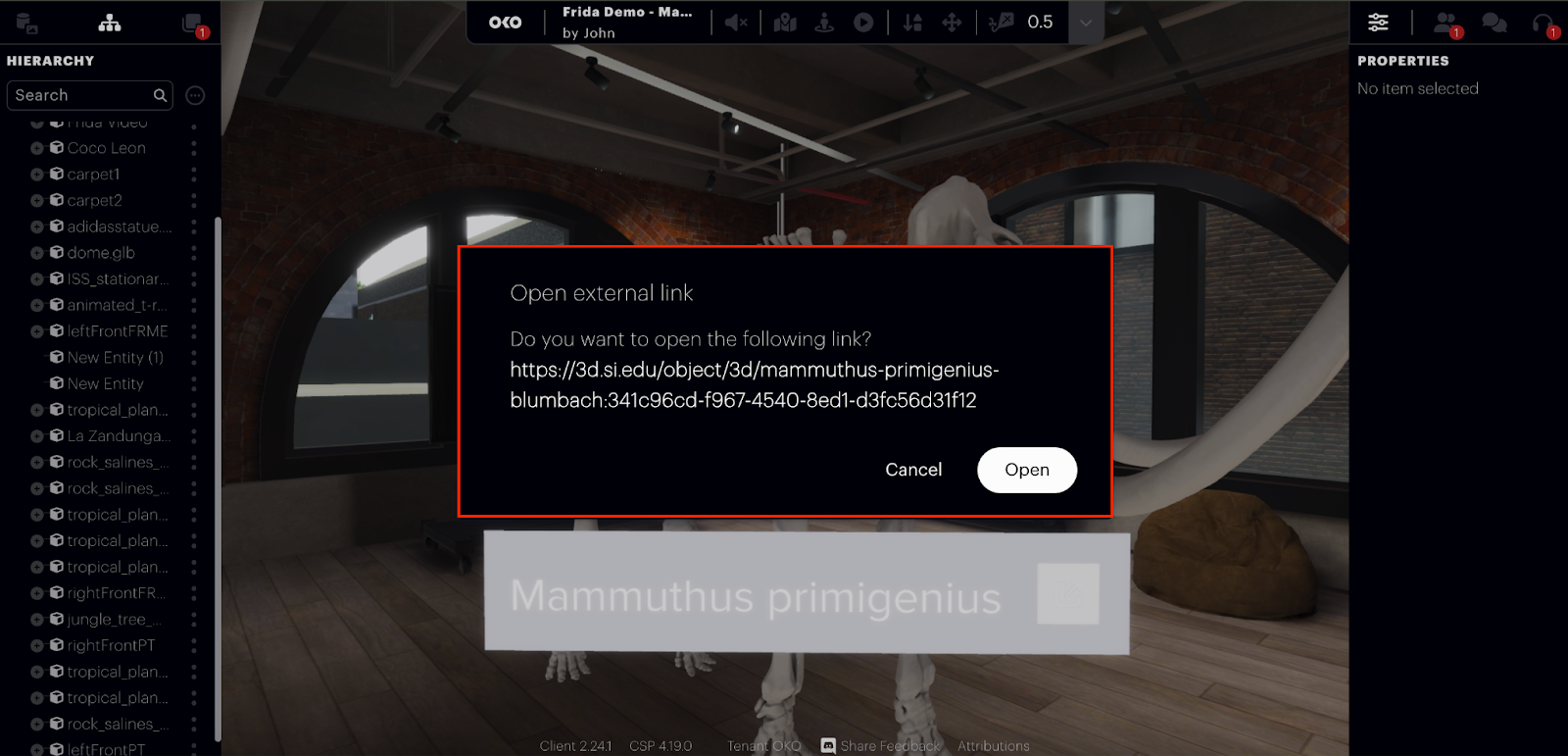 Once your space is live, users in the space will be able to click the external link, which will display the following pop-up to the user.