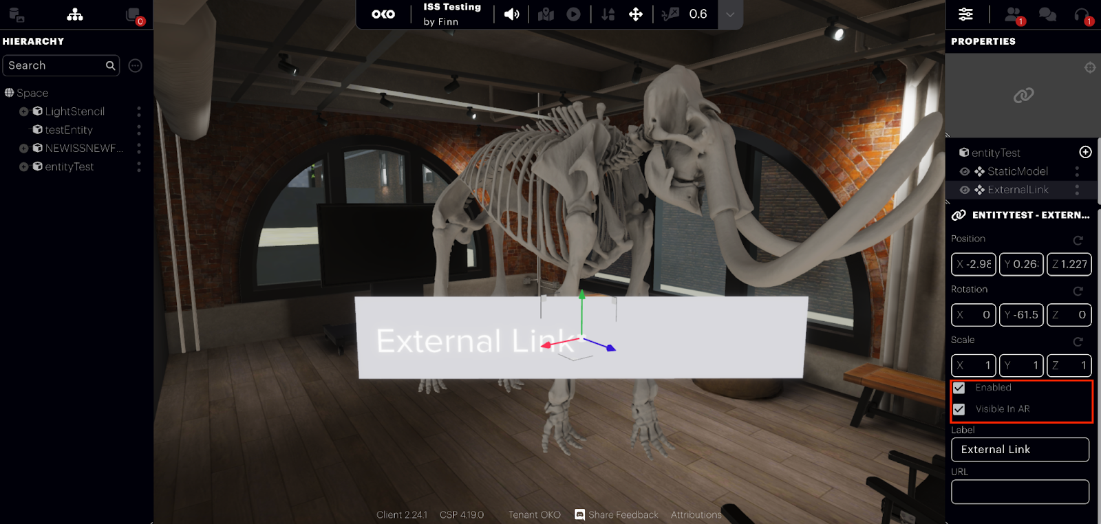 Visible in AR checkbox – you can decide if the External Link Component will appear in AR by checking on or off “Visible in AR”.