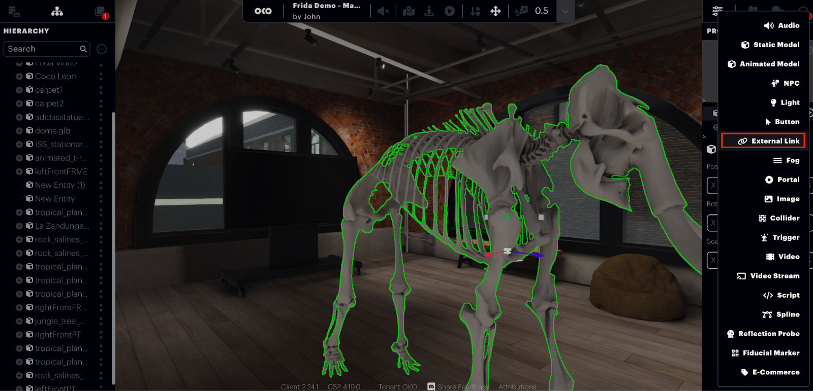 External Link Components can also be added to a space using the OKO Unreal Plugin.