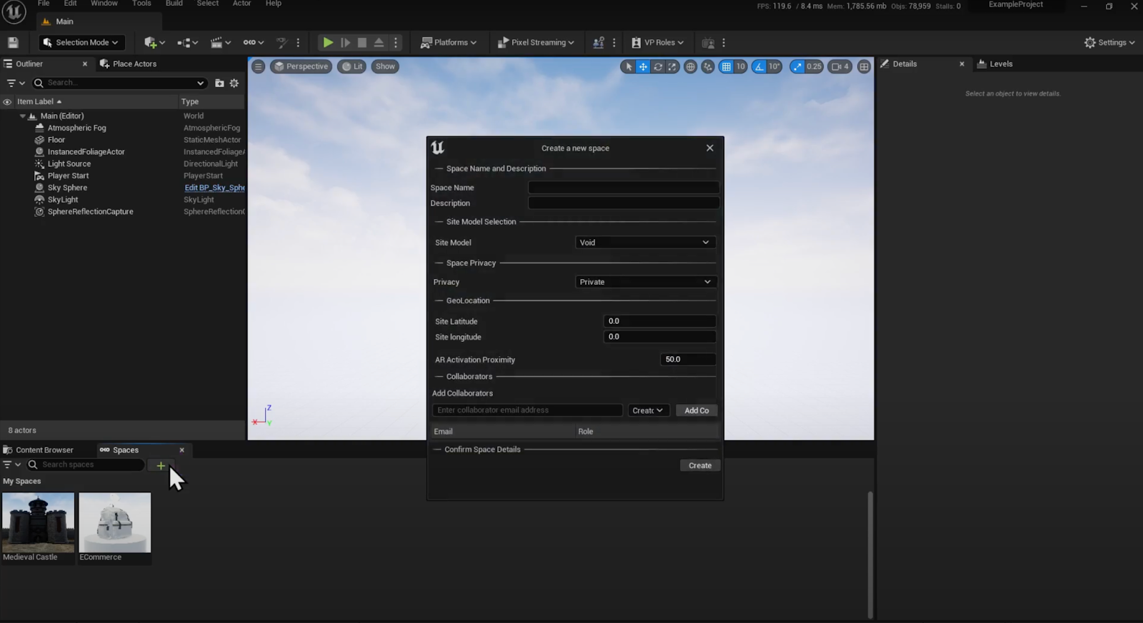 This article will guide you through the process of creating a space in OKO using the Unreal OKO Plugin.
