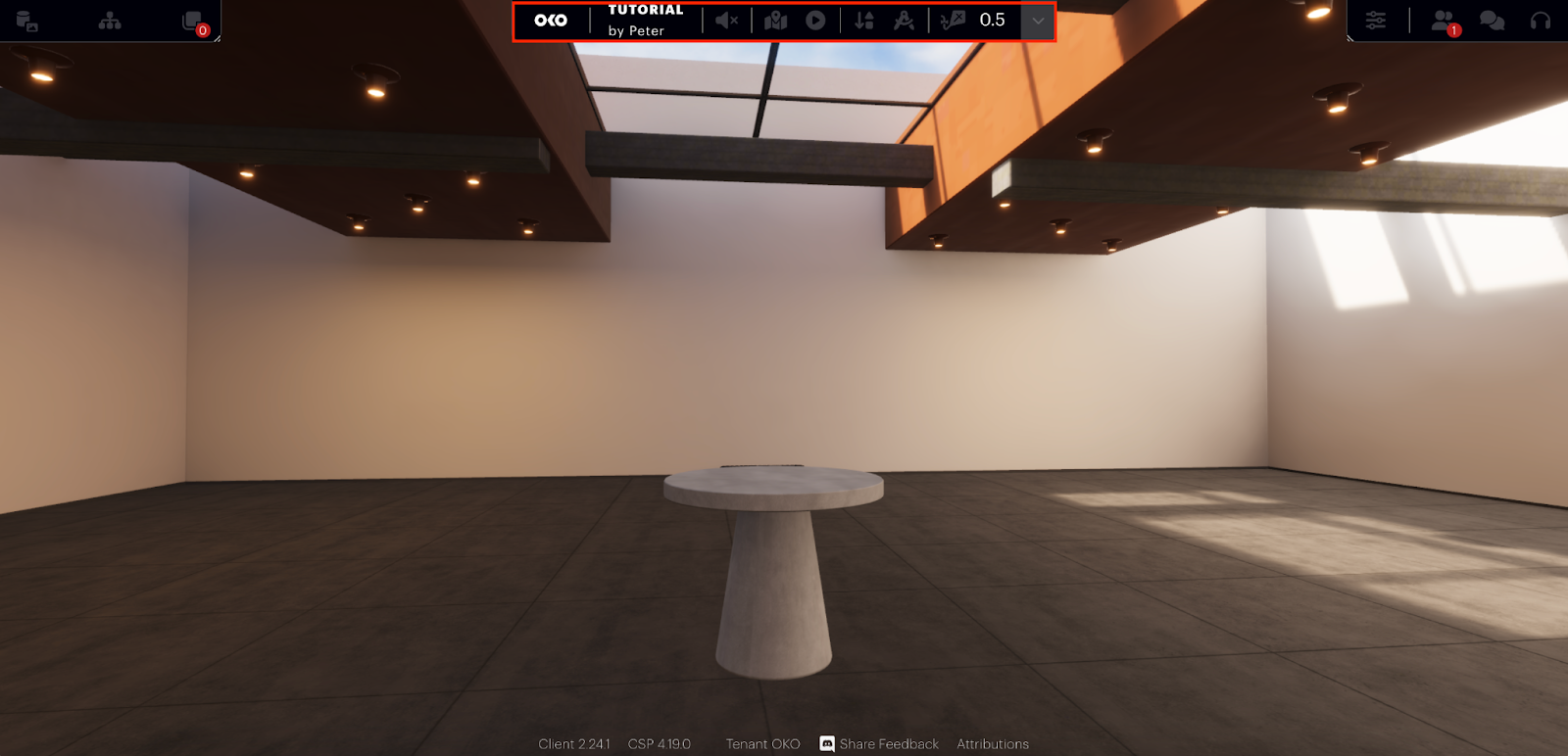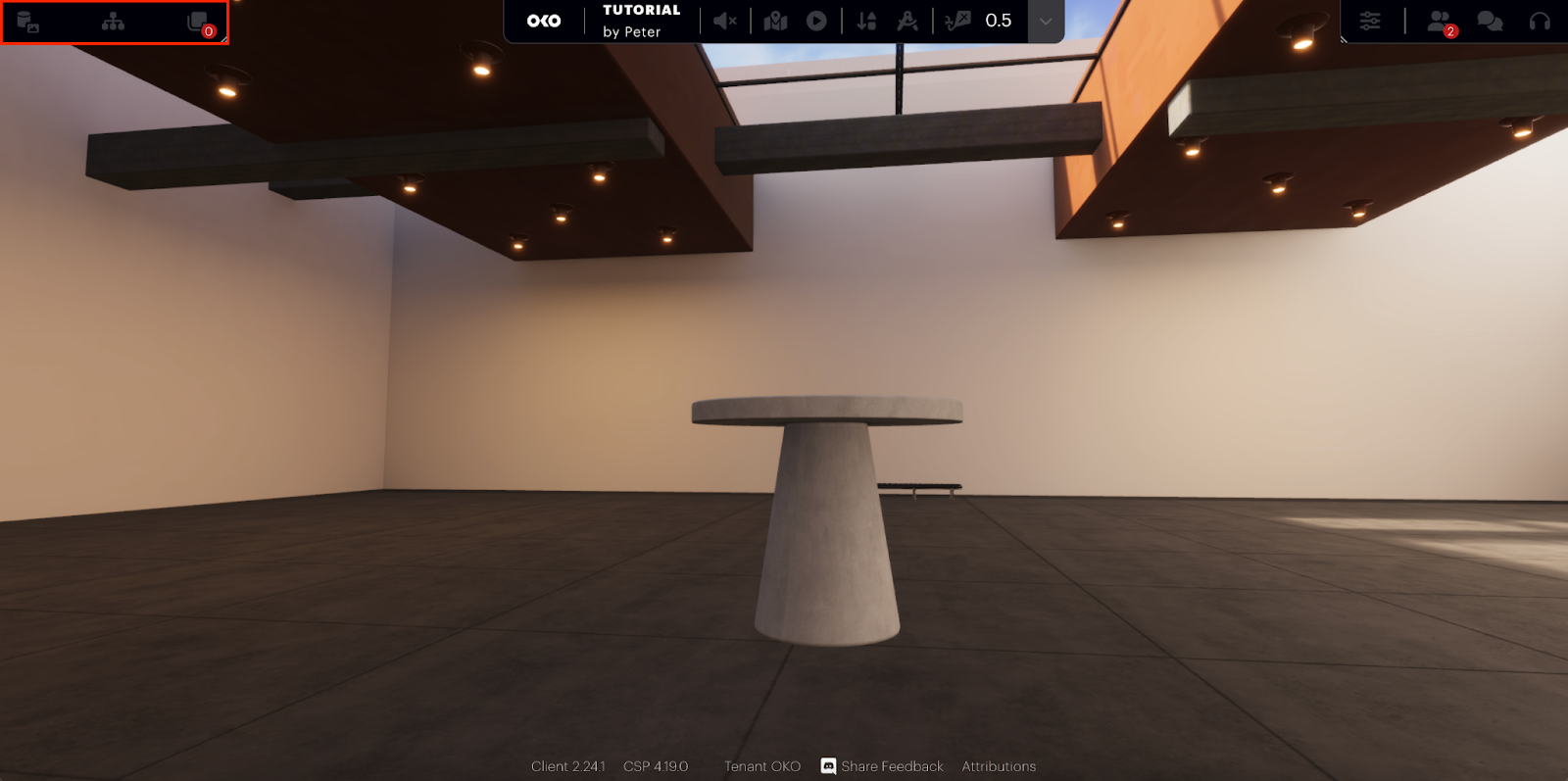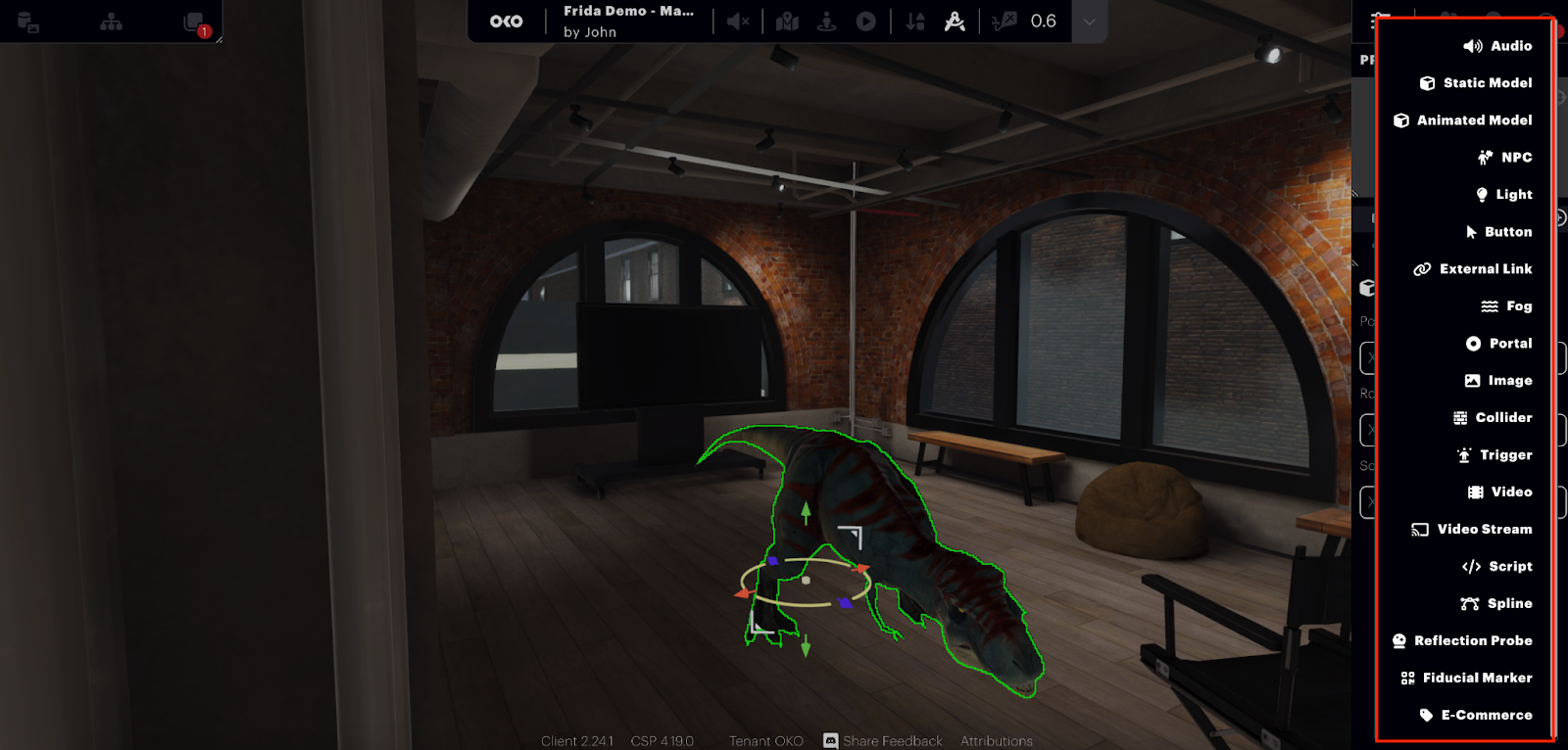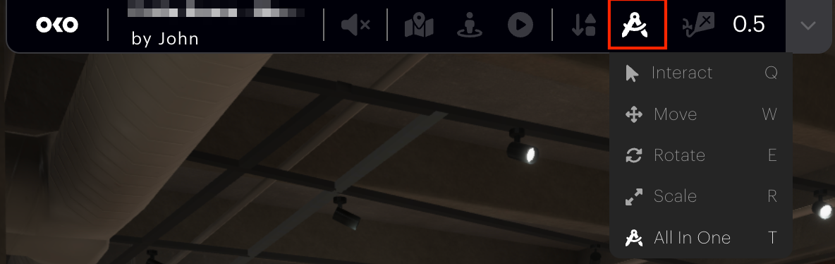 In addition to being able to upload your own custom assets, OKO also offers a selection of essential assets and primitive objects to get you started. If you select the “In Space” dropdown you will see several options.