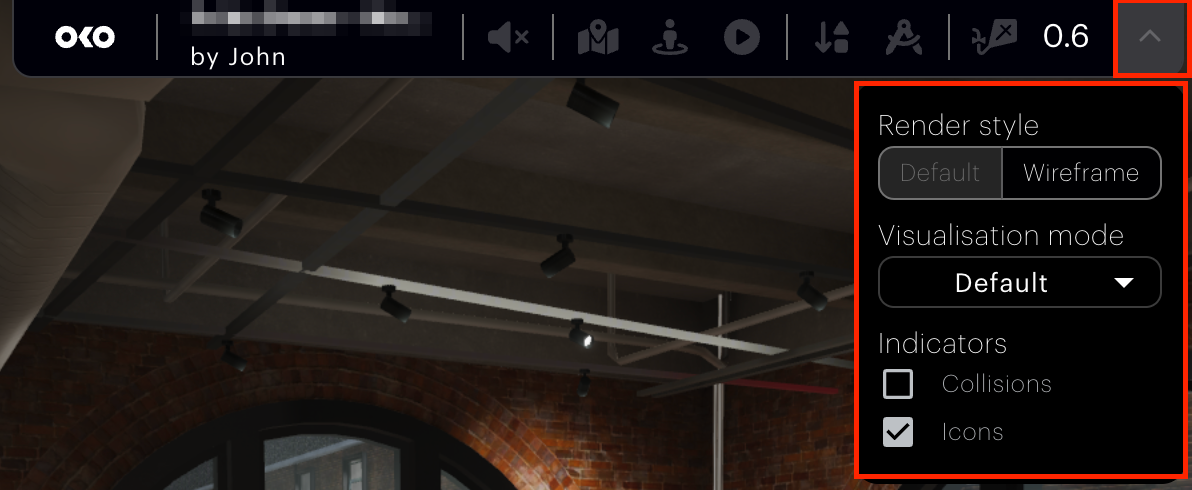 | Additional Options From here you are able to edit the render style, adjust the visualization mode, and enable collision and icon indicators. |