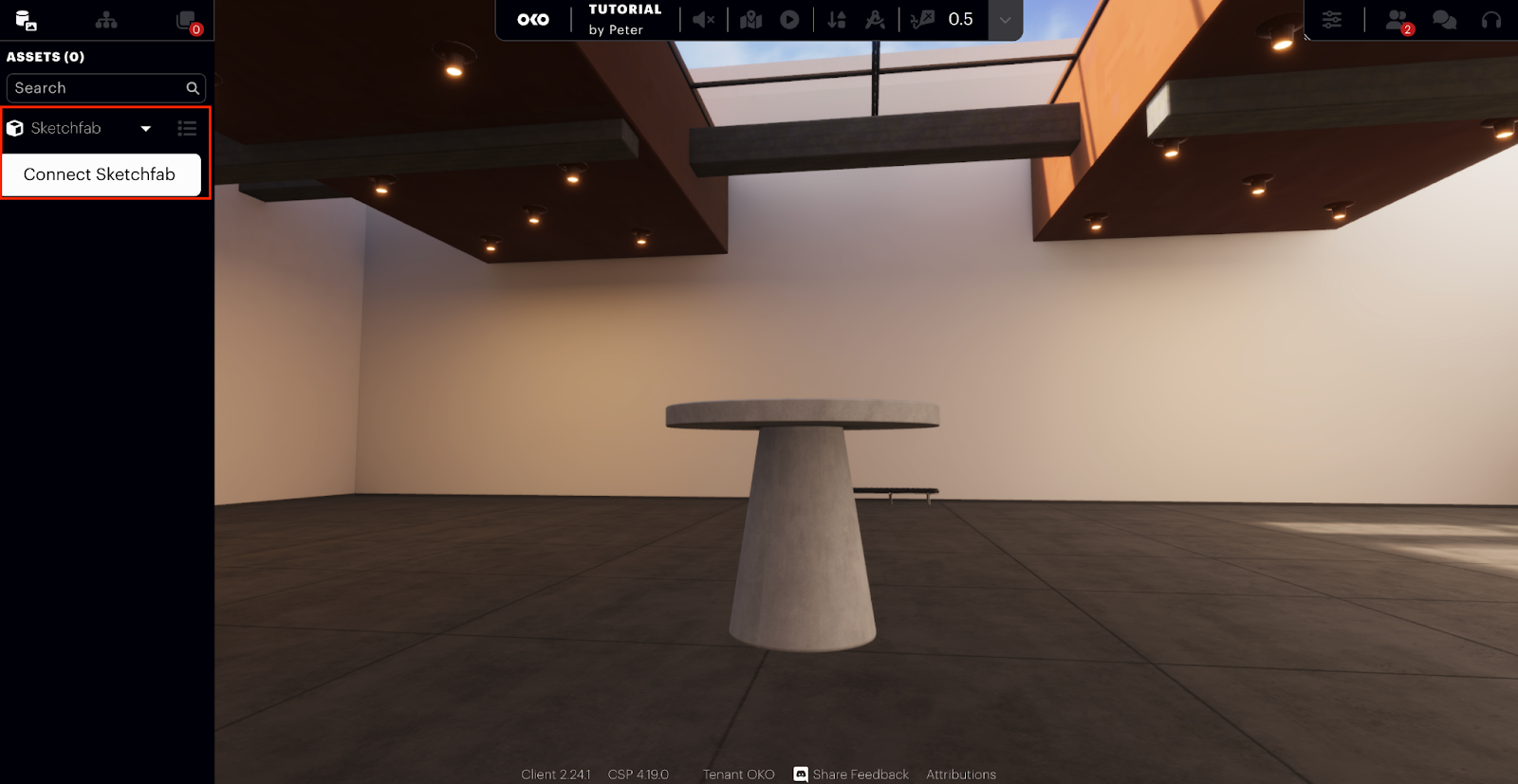 Select “Accept” and the assets will appear in your library. You can even use the Sketchfab database and search for assets to upload in OKO.