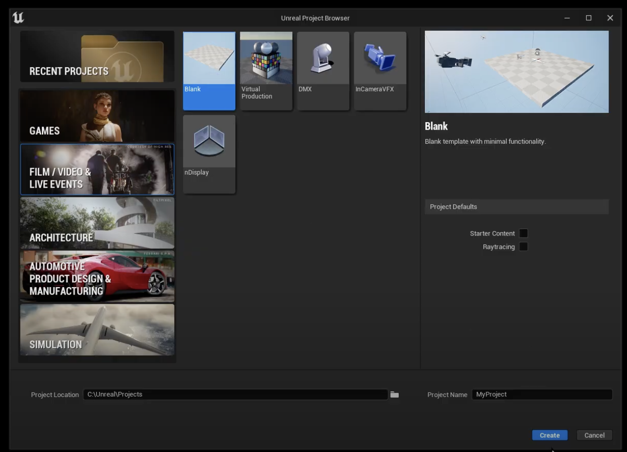 Before extracting the contents of the zip, head to Unreal and open a new project.