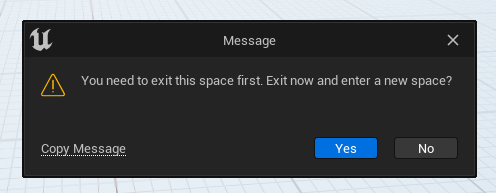 The team has continued the progress in improving the user experience of the Editor Extension. A new connections system with a flow for entering a space has been integrated. Now if a user is logged into a space and wishes to enter a new one, they will receive a pop-up informing them that they need to exit the space first and asking if they would like to exit the space now. If a user selects ‘Yes’ then it will automatically log them out of their current space and log them into the new one.