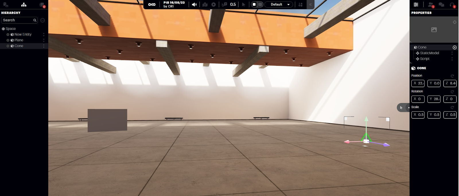 This panel is a replacement for the Worldbuilder and is available on the left-hand side of the page. It contains all space entities and components within a space,