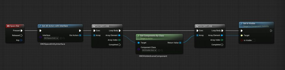 Video link for showing the visibility of components (a static model, a point light, and an image) toggles off when the space bar is pressed.