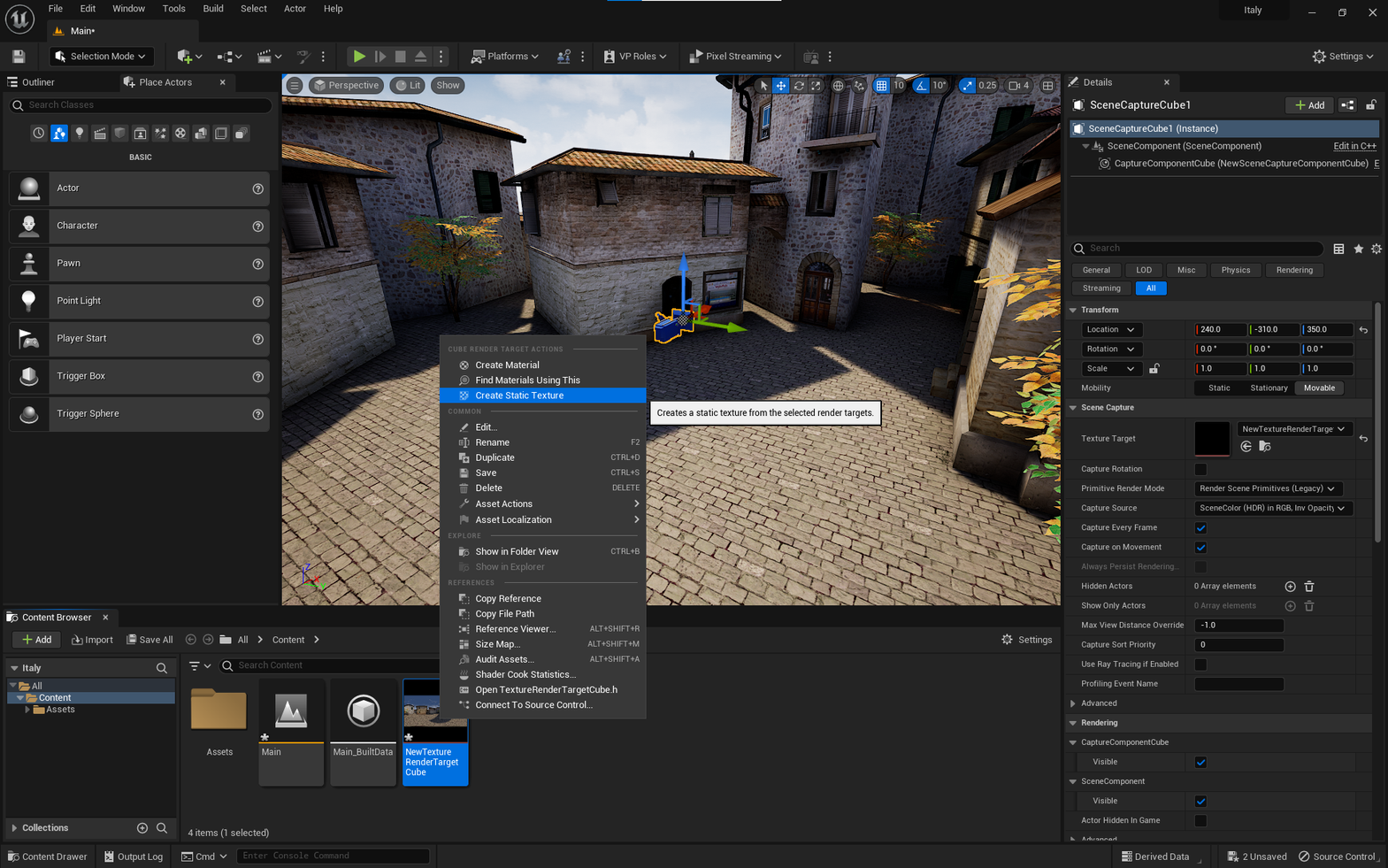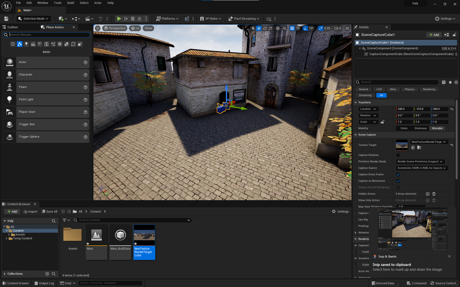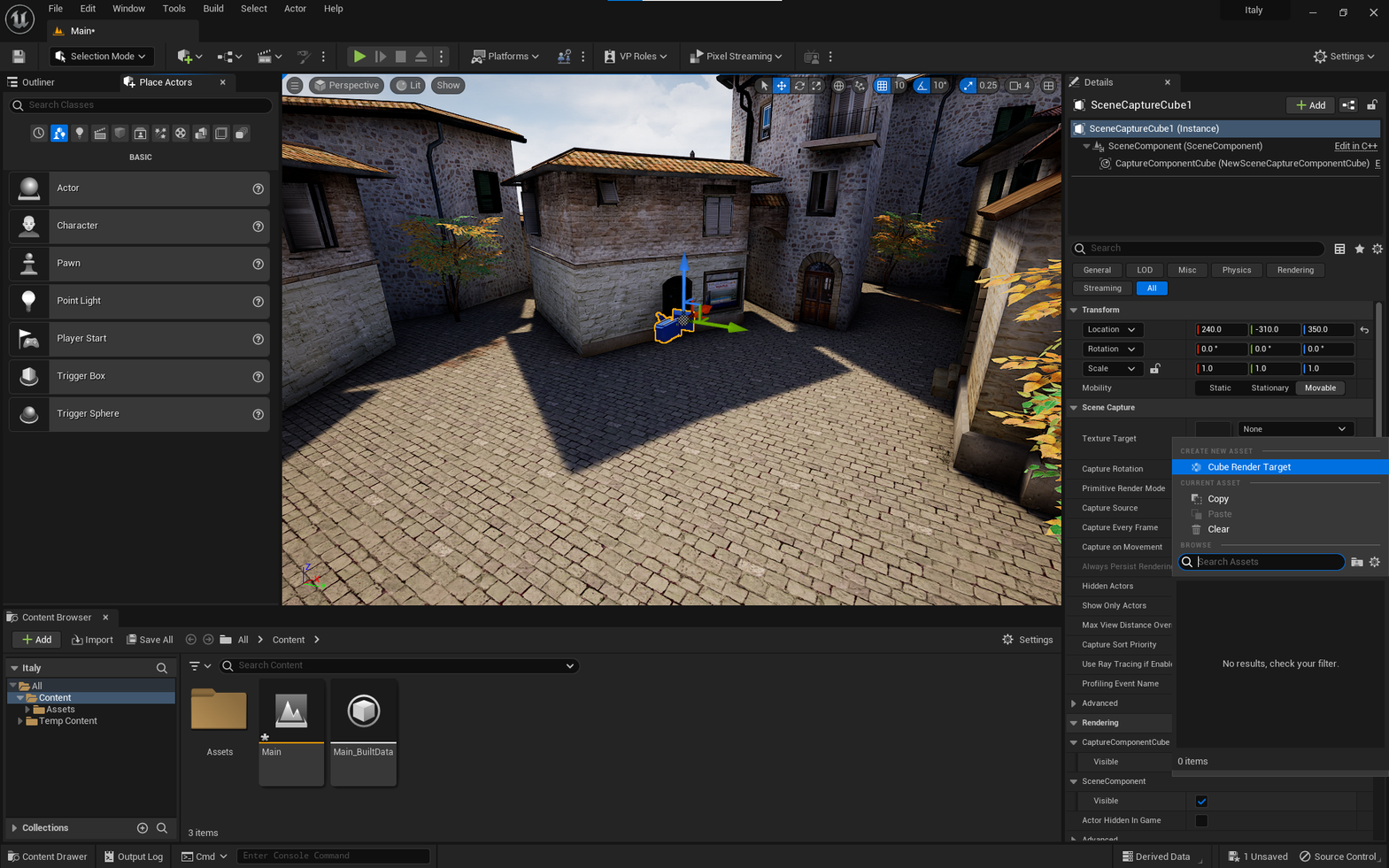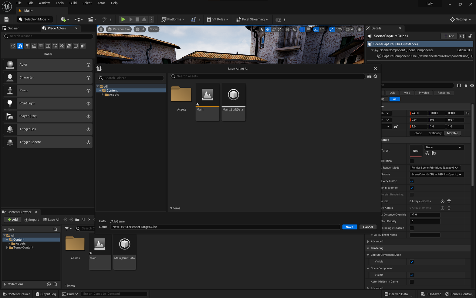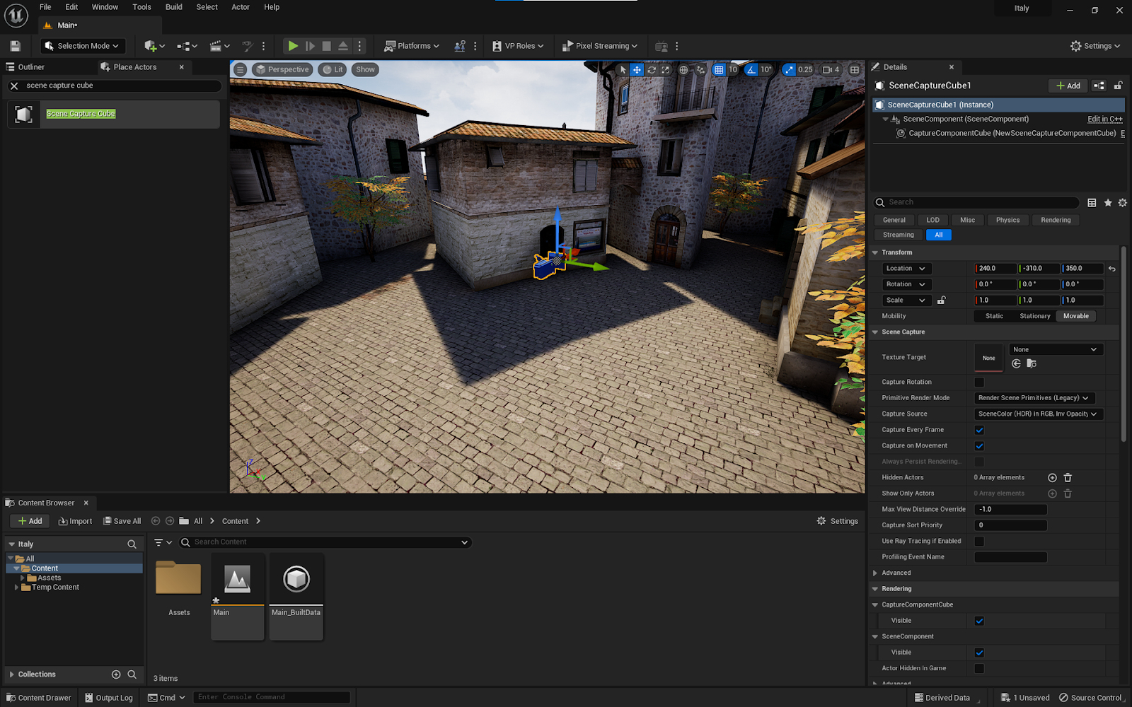 Drag and drop the Scene Capture Cube into the level.