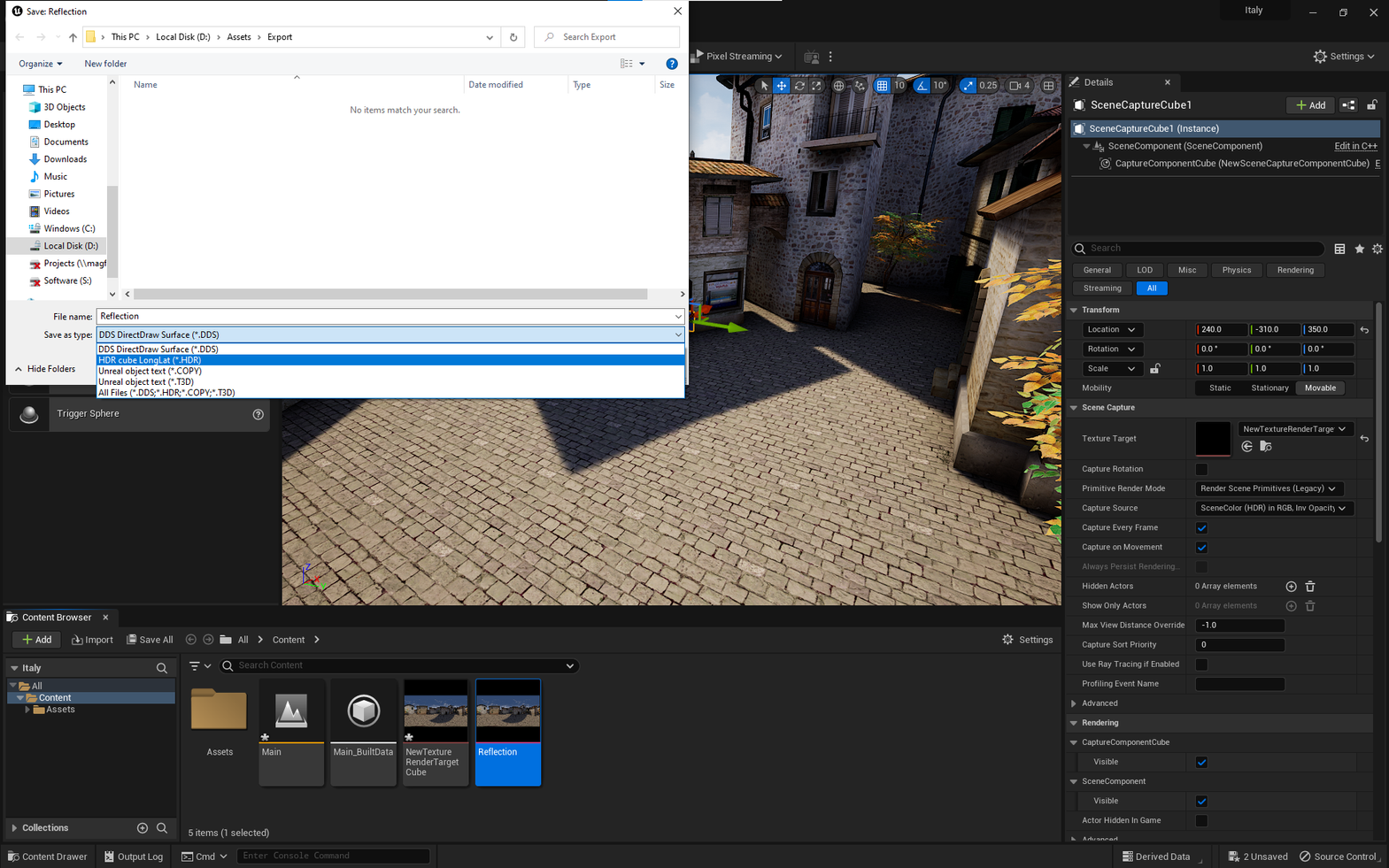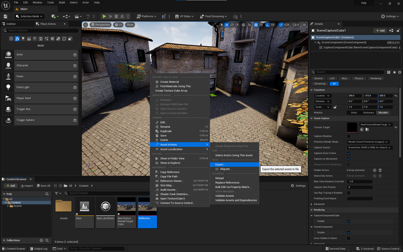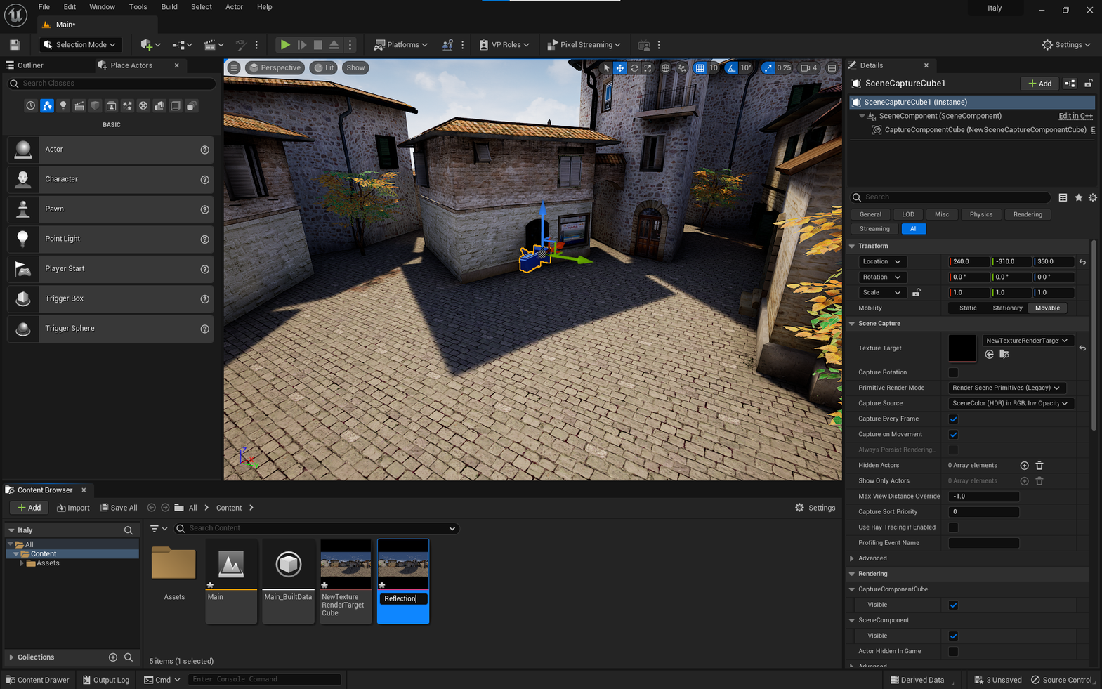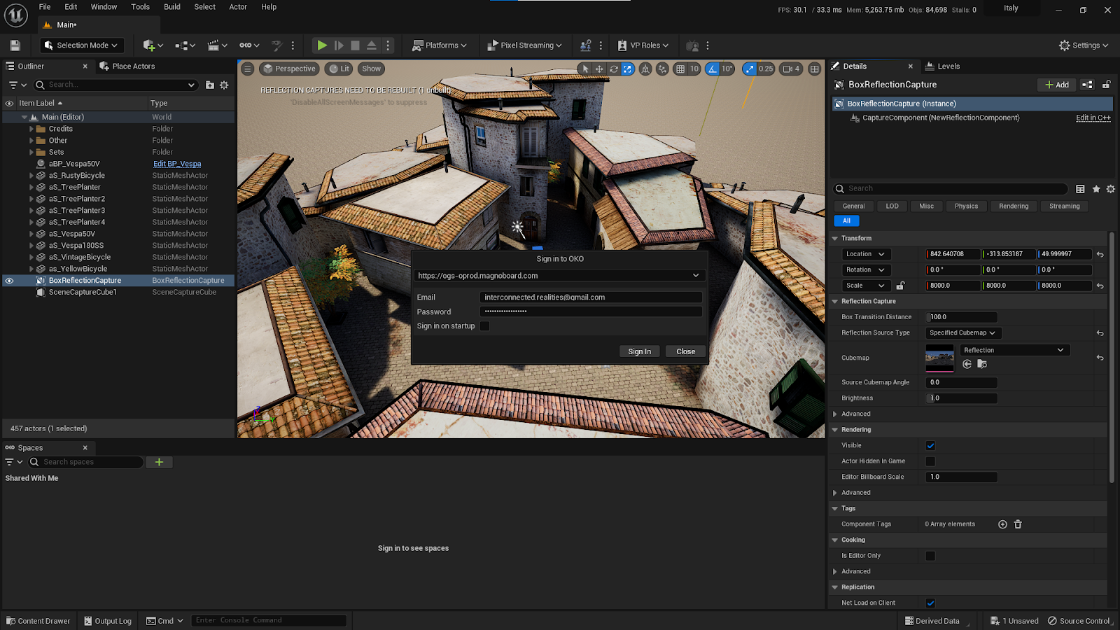 This article will guide you through a Reflection Capture workflow that uses Scene Capture Cubes. Alternatively, you can follow this guide, which demonstrates how to create an Entity with OKO Reflection Component directly.