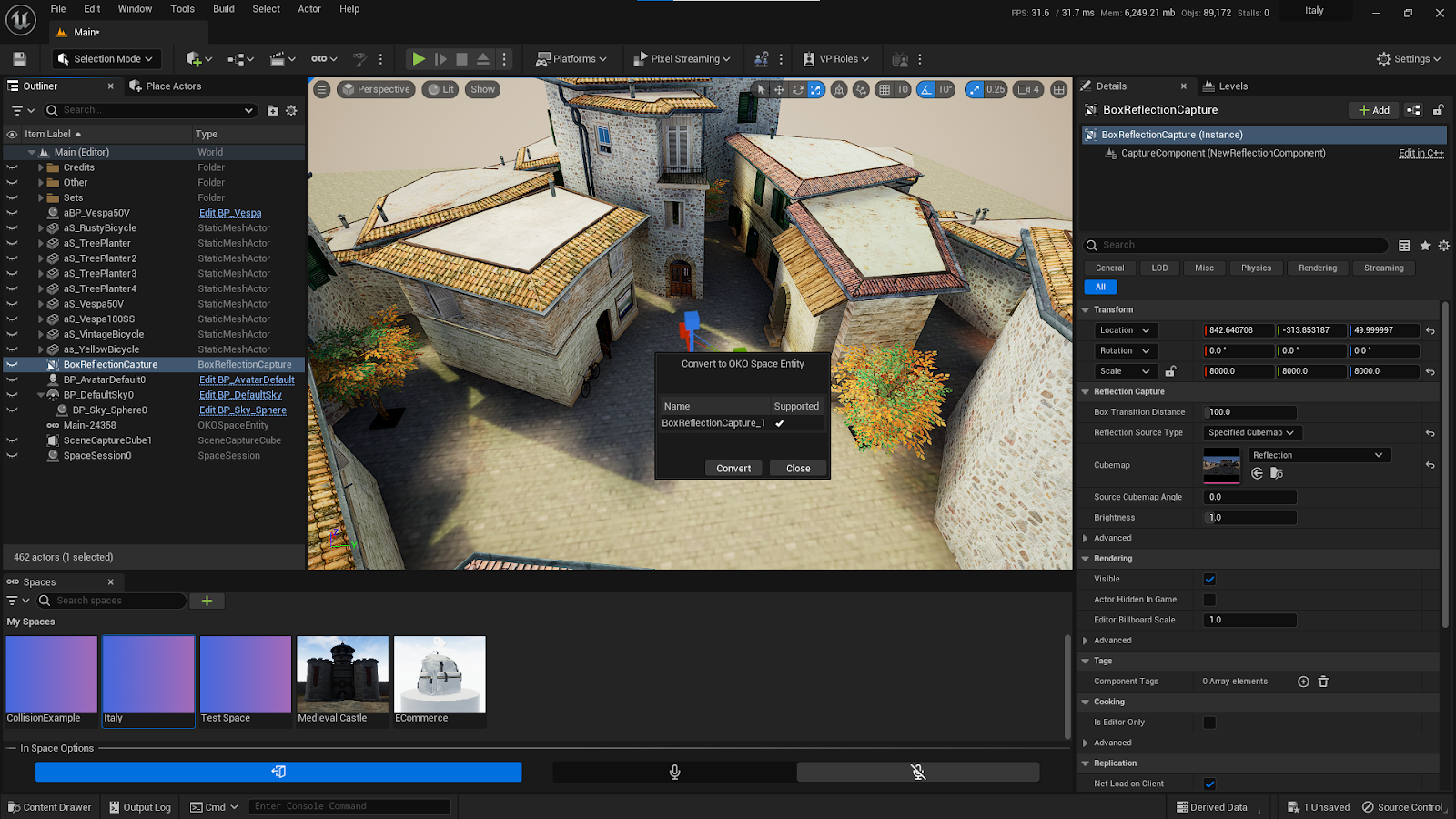 Observe that the “BoxReflectionCapture” now exists as an “OKOSpaceEntity”.