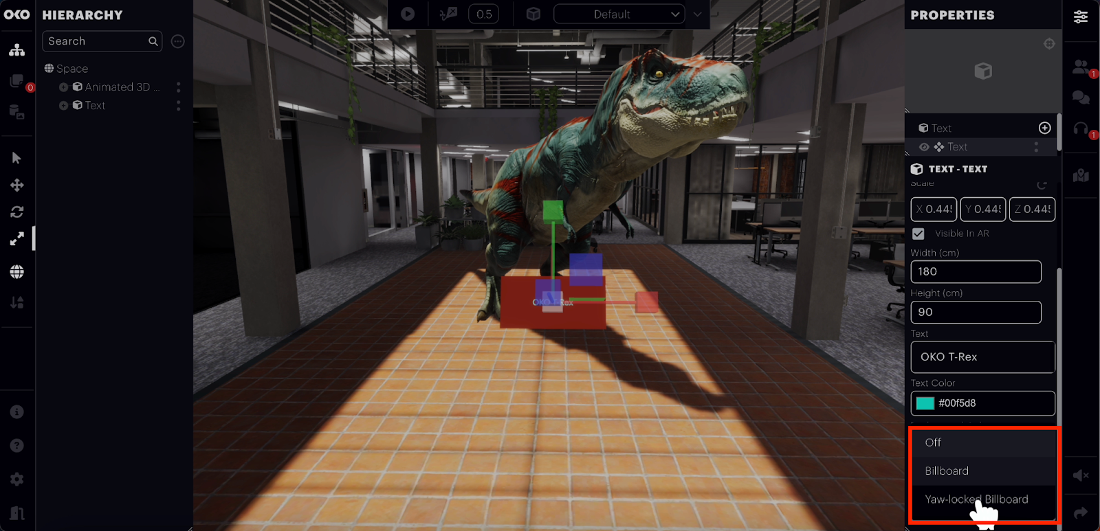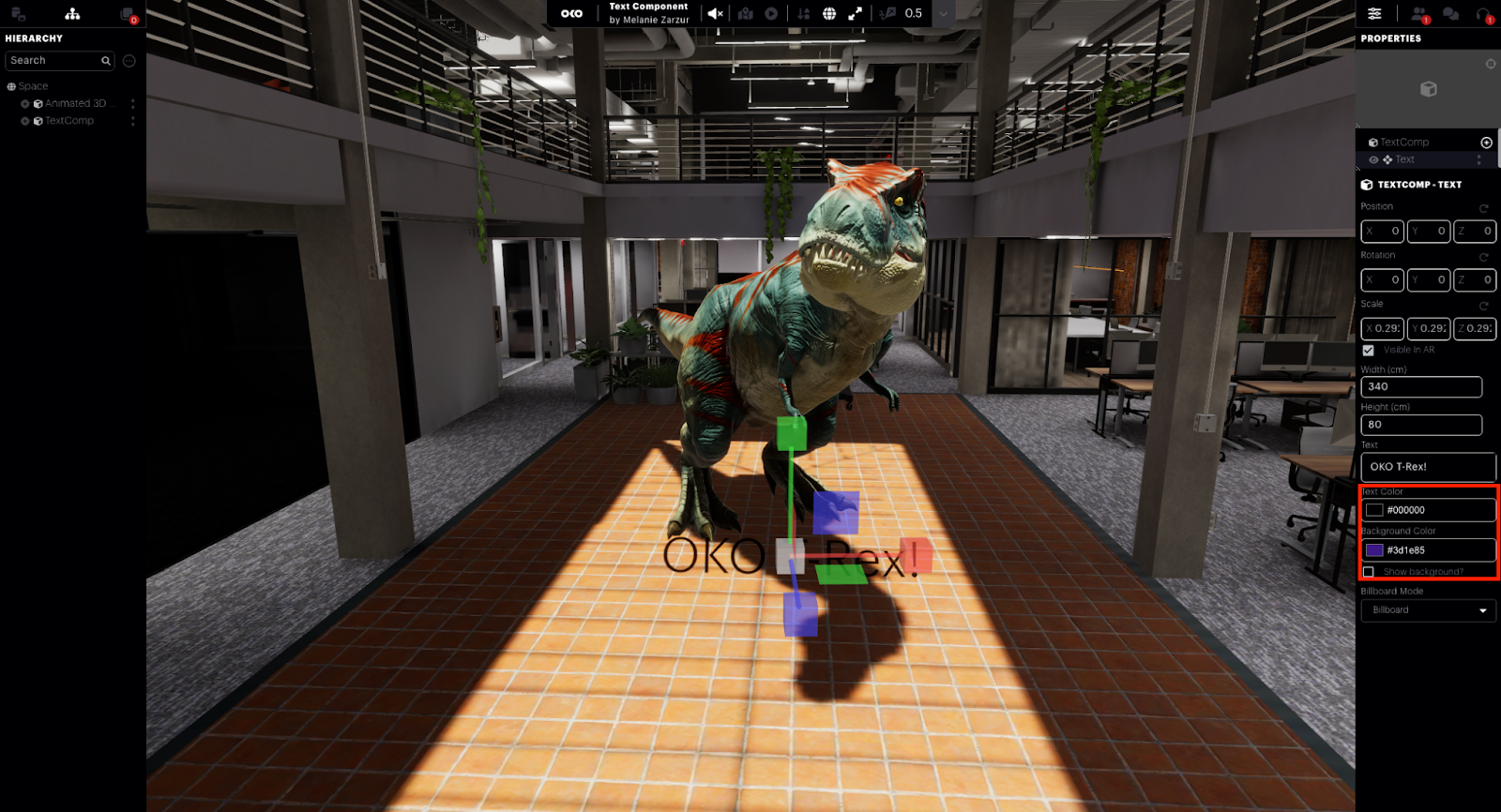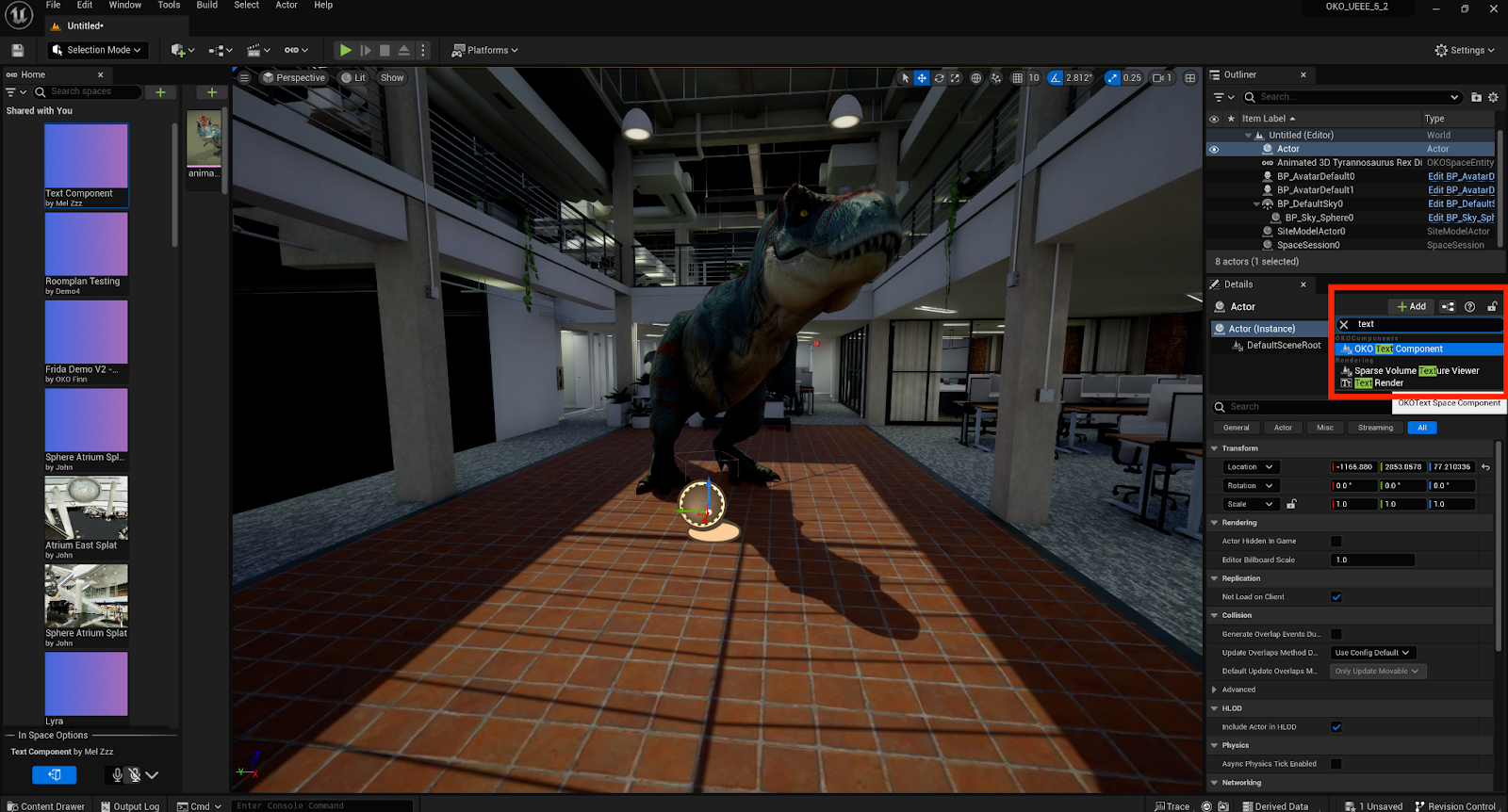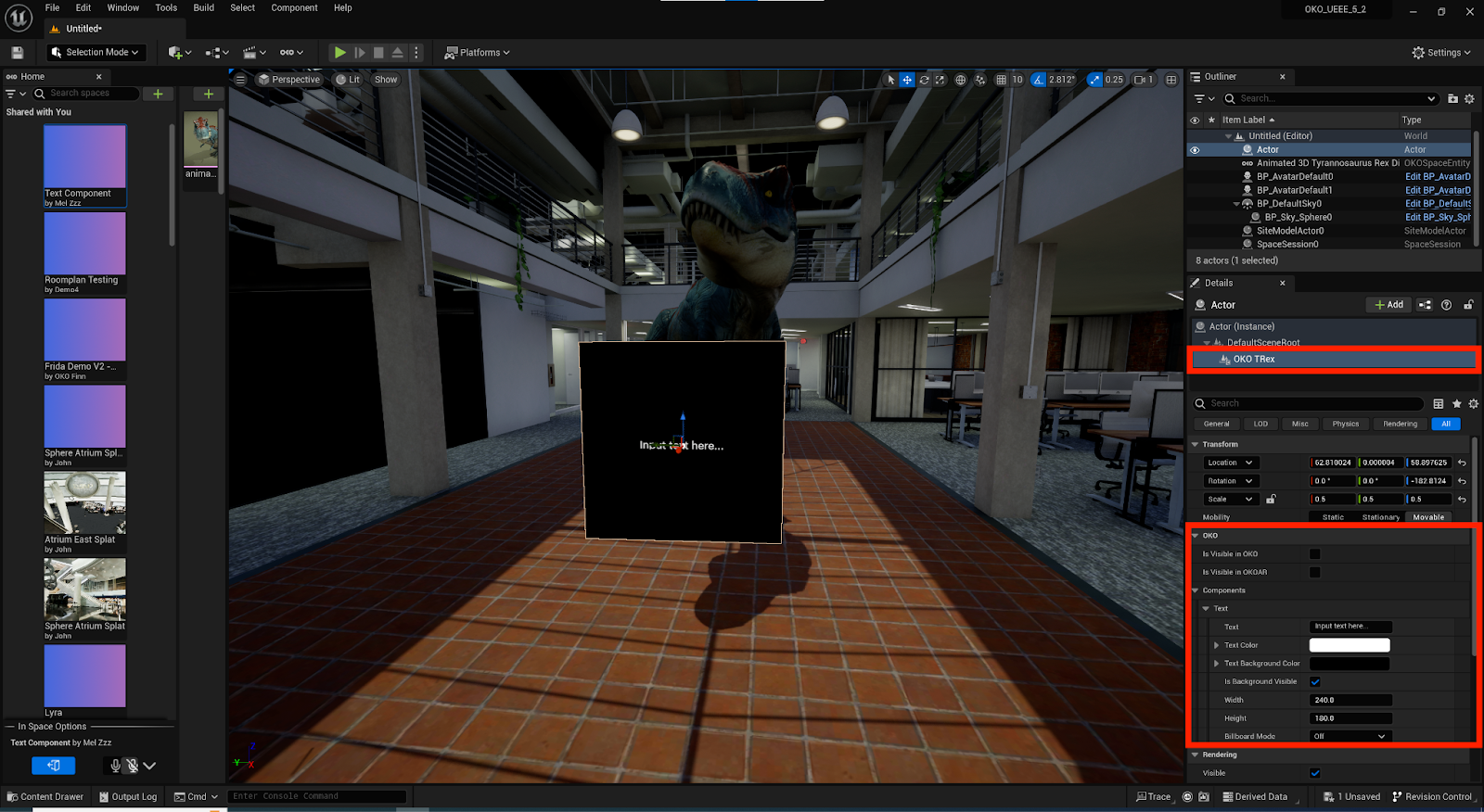 Text Components can also be added to a space using the OKO Unreal Plugin.