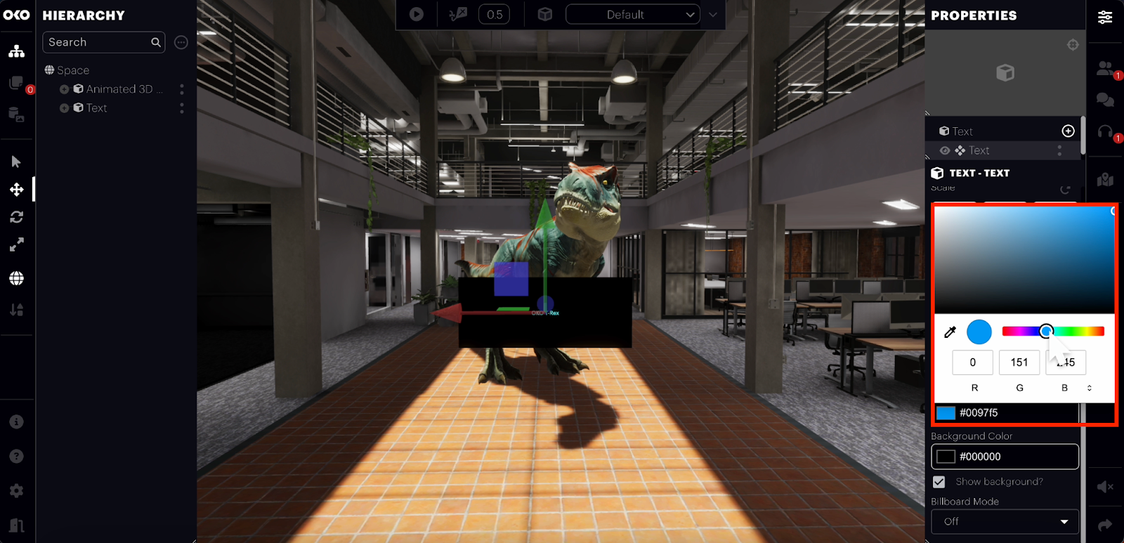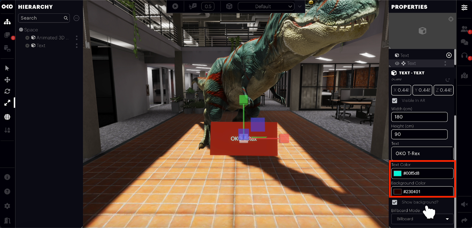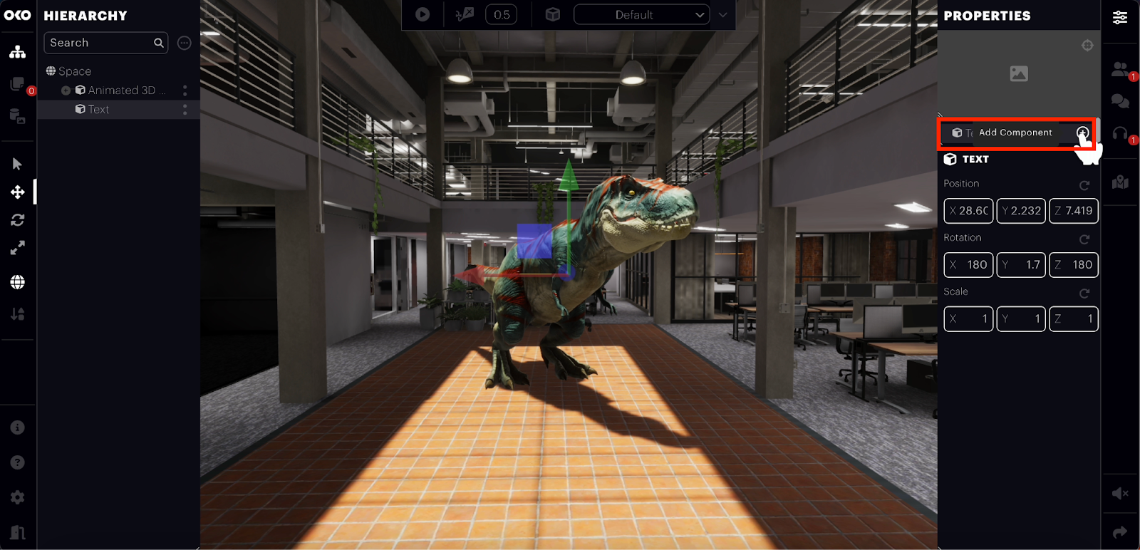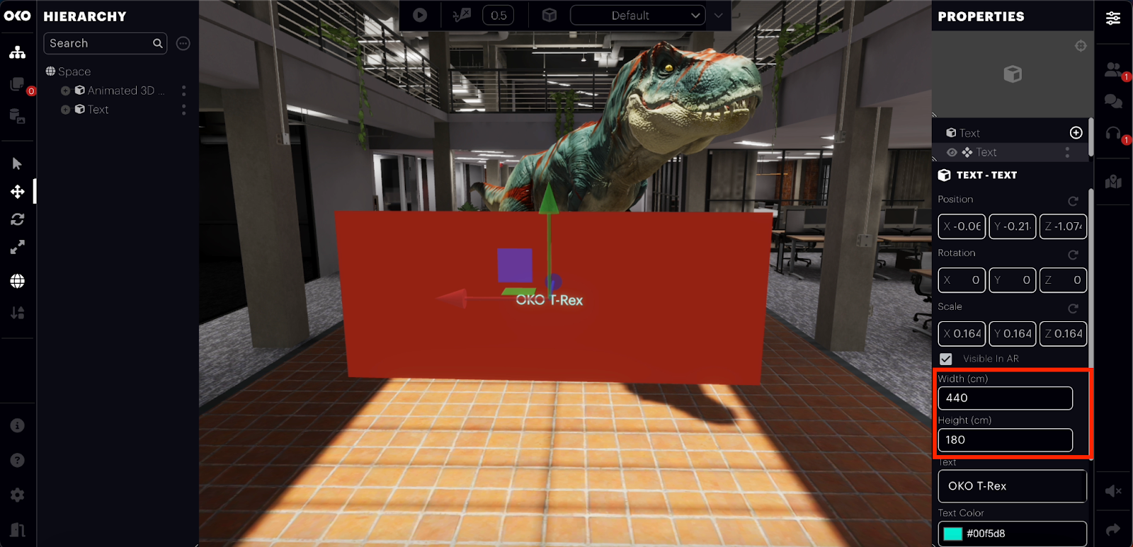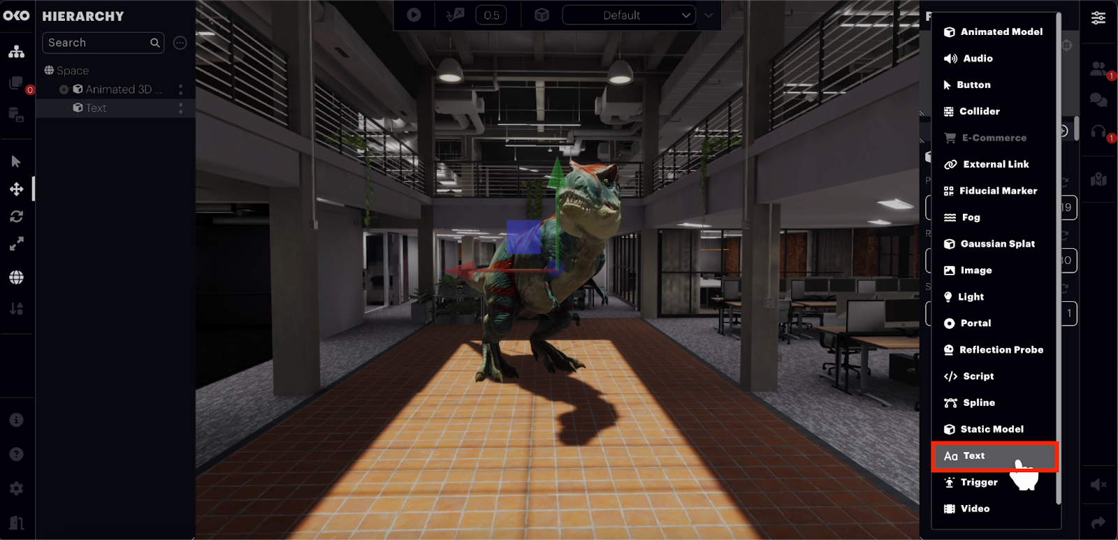 Text Components can also be added to a space using the OKO Unreal Plugin.