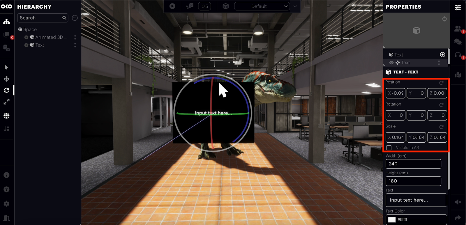 Transforms – you can use transforms to move, rotate, or scale the text component in the space.