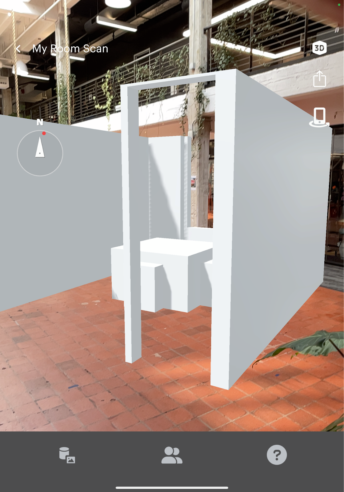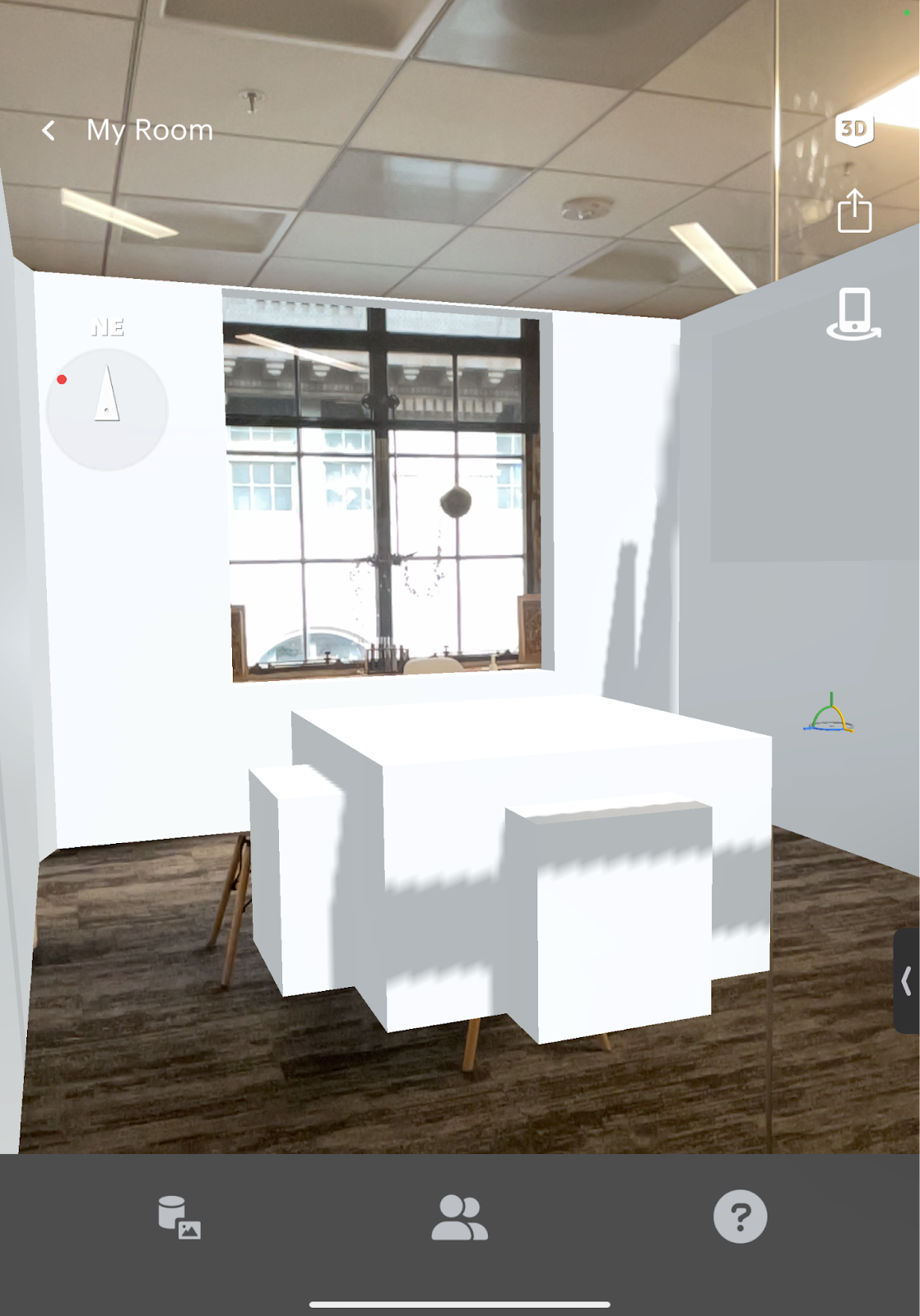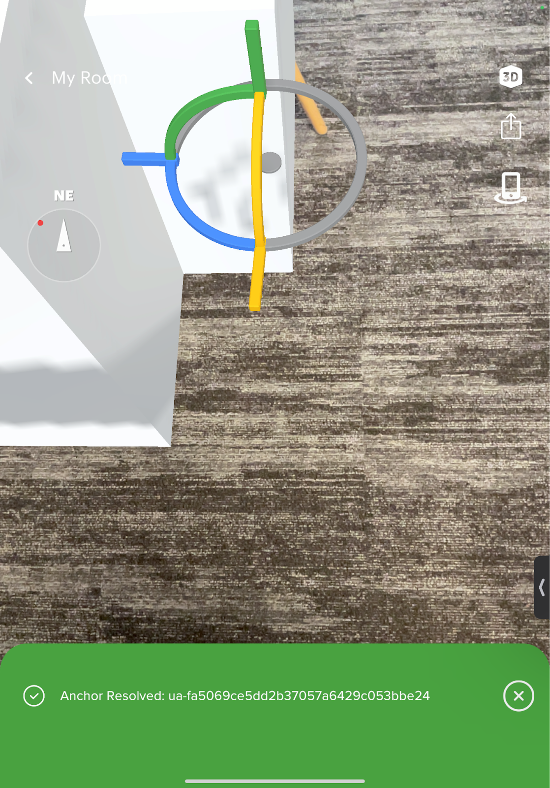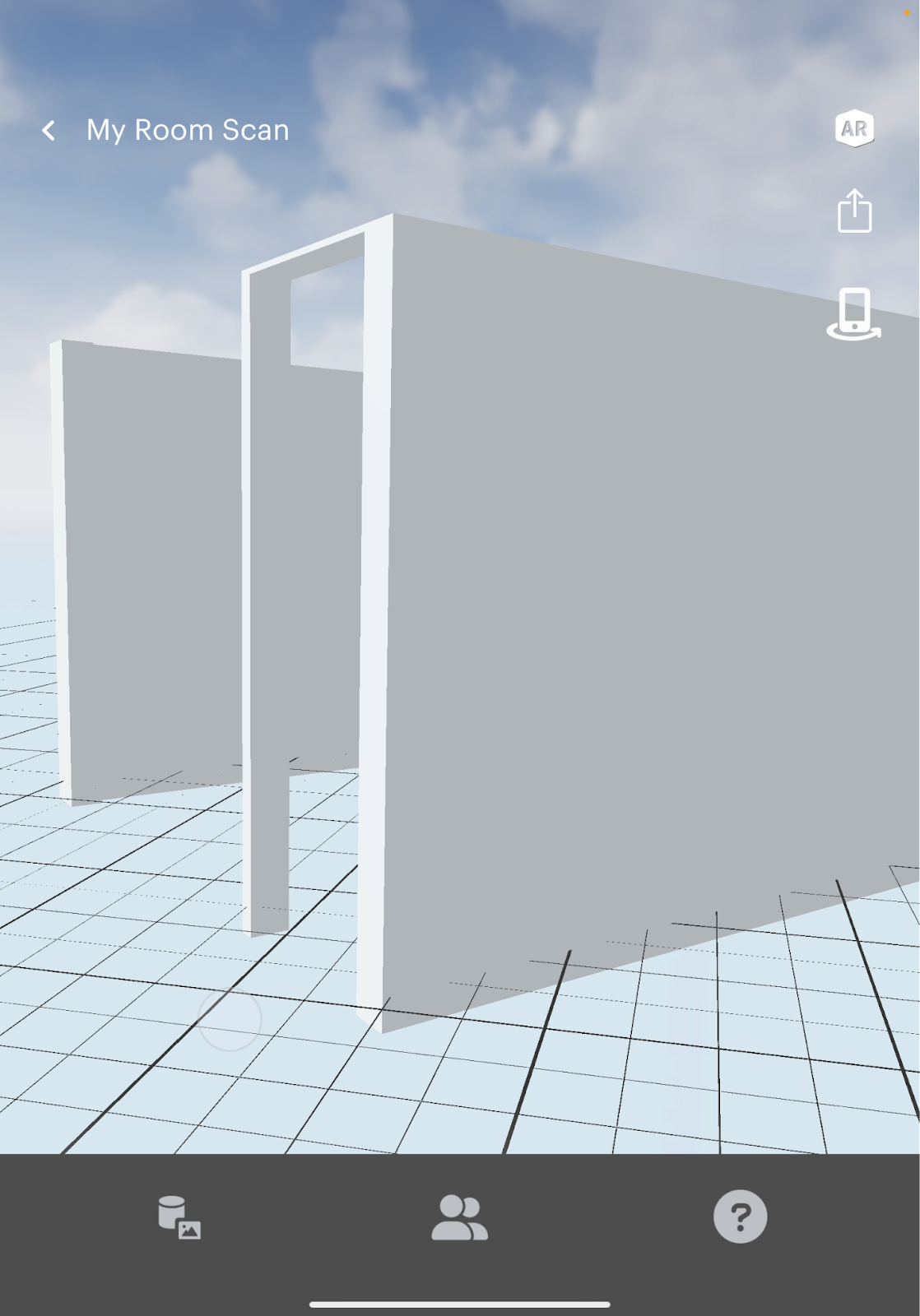 The model of your room will appear in AR mode. It will be anchored in the same location as the room in the real world.