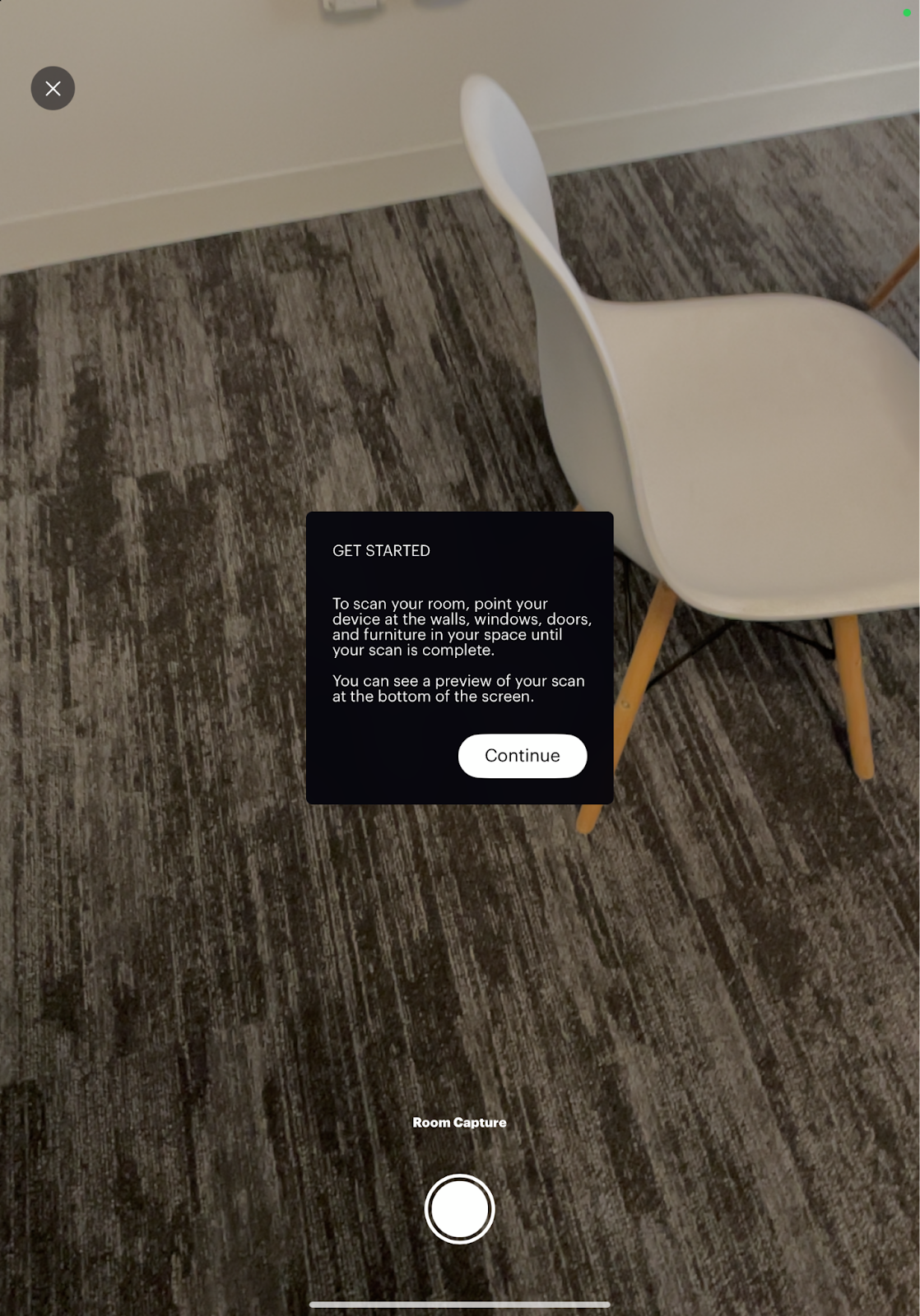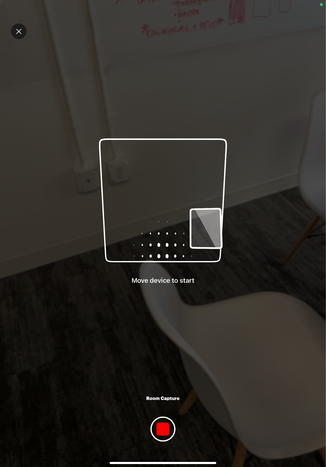 During the scanning process, gently move your device from side-to-side as you slowly move around the room to capture all the important features or landmarks.