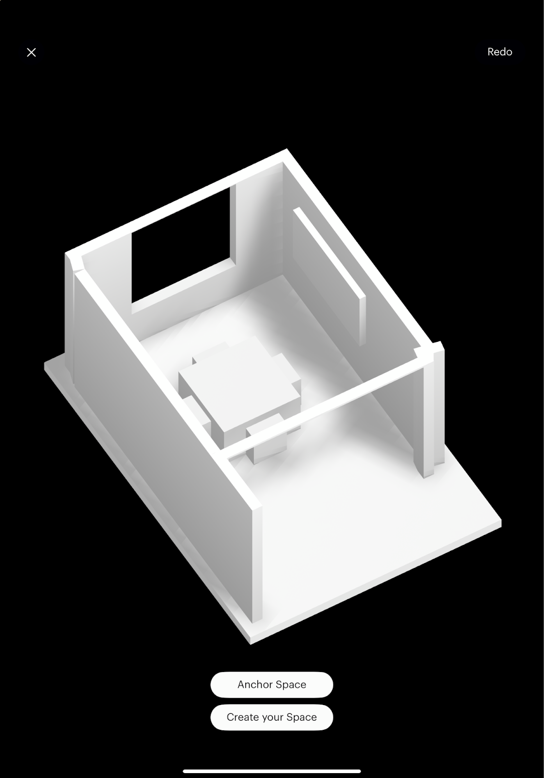 You also have the option to generate the model of your space without it being anchored to the same location in the real world. To skip the anchoring process described above, simply tap “Create your Space”.
